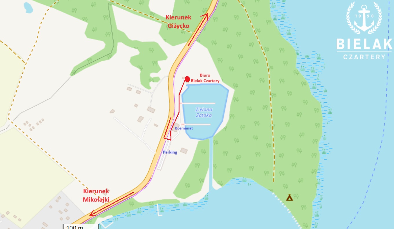 Malowniczo położny Port Zielona Zatoka, znajduje sie w samym centrum szlaku Wielkich Jezior Mazurskich, na złączeniu Jeziora Niegocin z Jeziorem Bocznym. Jest to bezpieczna i osłonięta wewnętrzna przystań do której prowadzi 100 metrowy kanał. Od strony wody znakiem rozpoznawczym wejście do kanału jest charakterystyczny czerwony domek pływającej Sauny.